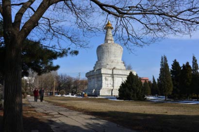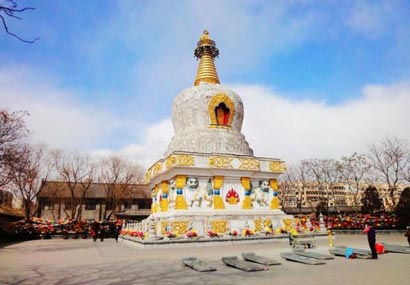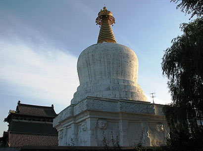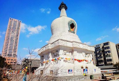 民间的流传是,当年的皇太极听信了喇嘛大师“建四方白塔可使国家统一”的游说,于是四塔均采用了相似的白色圆肚实心砖砌喇嘛塔风格,塔高24米,占地225平方米,由基座、塔身、相轮三部分组成。